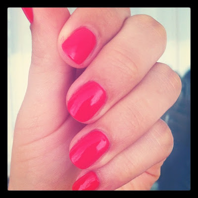 Anyway, so as to keep this blog going, i took a photo of my freshly painted nails. This time i used OPI's Cajun Shrimp and what you're looking at is a base coat, 2 coats of Cajun Shrimp and a coat of INM Out The Door (because i never leave my nails without a topcoat). It dried superfast (for me, at least)) - about 15 mins later i didn't have to bother about smudging the polish.